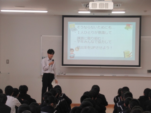学年生徒会では、来週から「提出率UPUP大作戦」を行います。