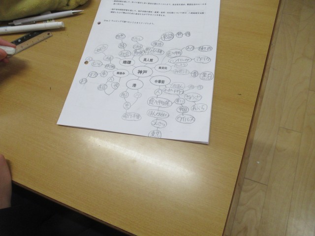 班別学習を行う神戸についてウェビングを行い、八尾や富山と共通点や違いを見つけていました。