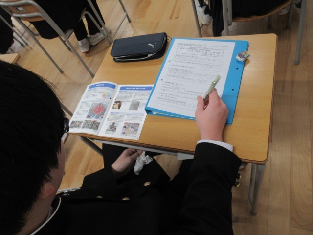 今日は修学旅行に向けて平和学習2回目を行いました。