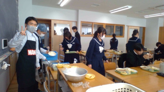 本日の給食はソフト麺でした。真剣に授業や受験勉強に取り組む顔とは打って変わって、心なしかほっとした表情が見えました。