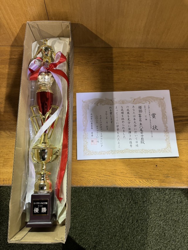 スポーツデポフットサルCUP2026U14にて、南砺Aに3対4で負けましたが、勝ち点差で優勝しました。