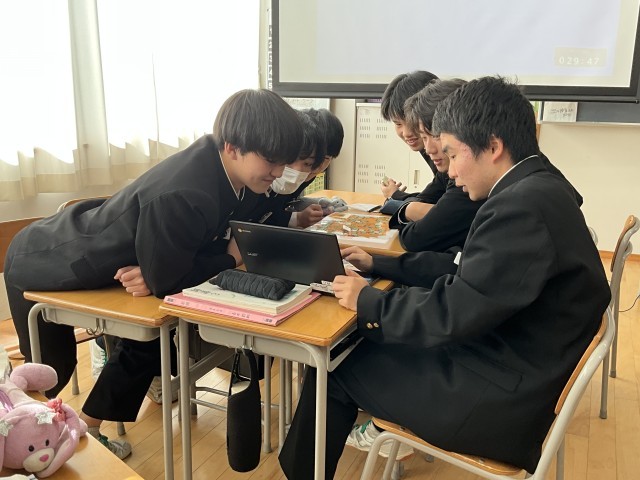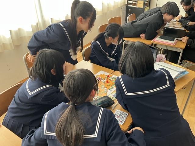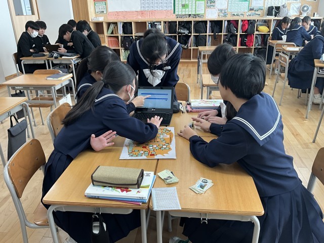 4組の様子です。各クラス獲得点数が200点越えのチームがいましたが、4組はおらず、、、。芭蕉に一歩届かない結果となりました。すごろくの中には「坐禅を10秒する」というミッションもあり、坐禅の正しい組み方に苦労する生徒もいました。