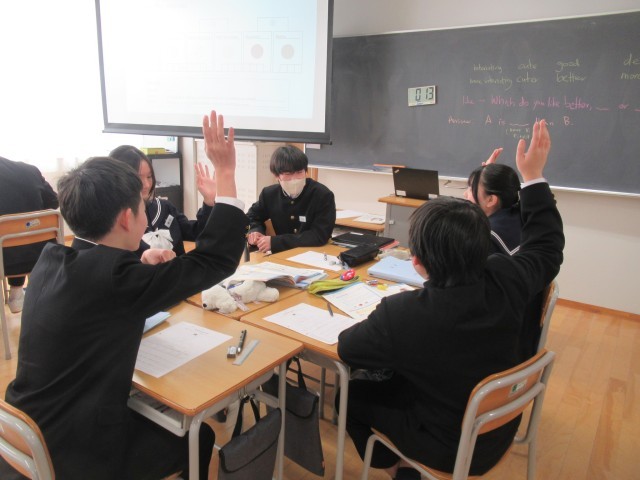 1月27日(火) 2年生 授業の様子 公開日 2026/01/28 更新日 2026/01/28 2学年 2年生の英語の授業では、先週に引き続き「比較」の表現について学習しています。この日は〇〇ランキングを作る活動を行いました。自分でトピックを決め、同じ班の仲間に投票してもらい、1番を決めました。 強い動物、好きな色、重要な教科・・・など、いろんなトピックがあり、真剣に悩んで投票していました。 +5