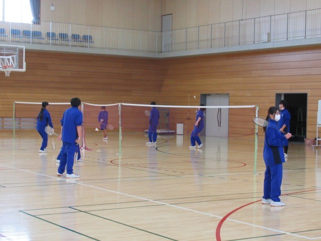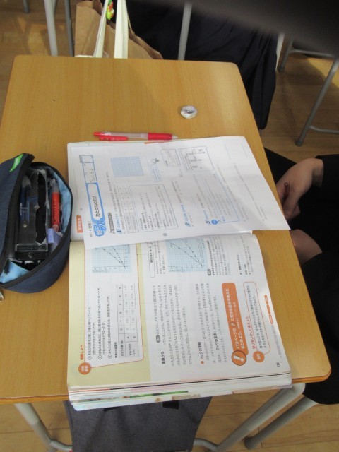 3限 1組は保健体育で「バドミントン」ダブルスを、2組は社会で「北アメリカの産業が巨大化したわけ」を、4組は理科で「力とばねの計算」をプリントを使っての学習をしていました。