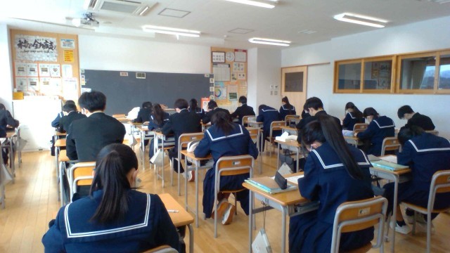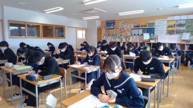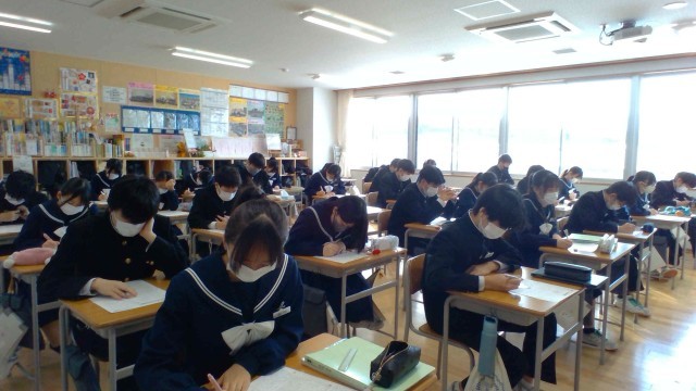 1組の授業の様子です。理科の入試対策問題を解いています。私立高校入試の前日ということもあり、朝から緊張した面持ちの生徒も見えます。今の頑張りの成果が発揮されることを願うばかりです。