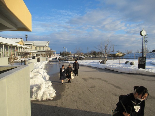 今日が私立高等学校の一般入試日。やや人影の少ない登校風景となりました。