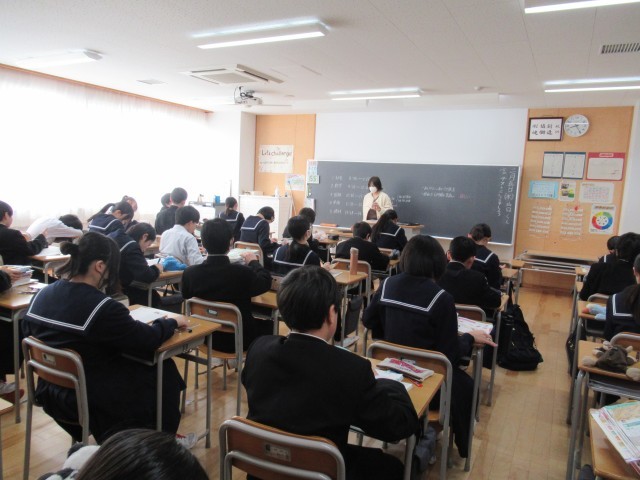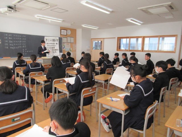 今日は実力テストの日。社会・数学・国語・英語・理科の順で1年間の学習の定着度を確認します。皆さん真剣に問題に向かっていました。