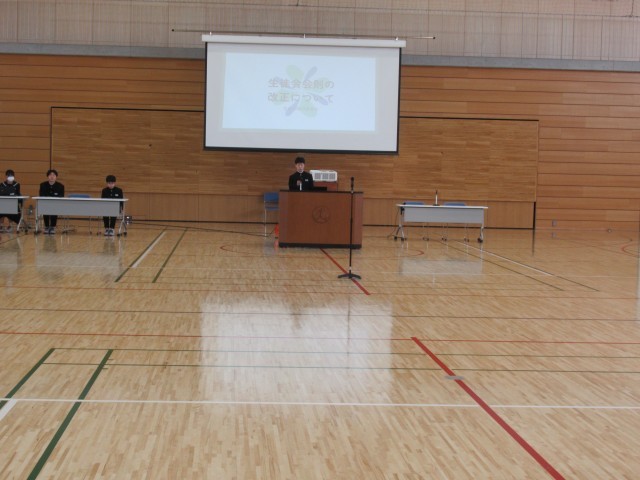 6限に1、2年生による生徒総会が行い、生徒会会則の見直しを図りました。執行部が現状に即した改訂条項を提案し、審議の上、承認されました。