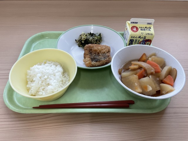 おでんは日本の伝統食ですが、その土地の特産品や食文化を反映した具材もあり、とても個性的な料理だと思います。「富山おでん」と言えば、やはり昆布消費量日本一を示す「とろろ昆布」のトッピングになります。また、北海道では長方形のさつま揚げが入りますが、その形状から「マフラー」と呼ばれているそうです。沖縄では「テビチ」と呼ばれる豚足が入るそうです。こんな記事を書いている最中に、「ただいま給食が出来上がりました」とおでんわがありました。(注:実際には、そんな電話はありません)