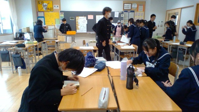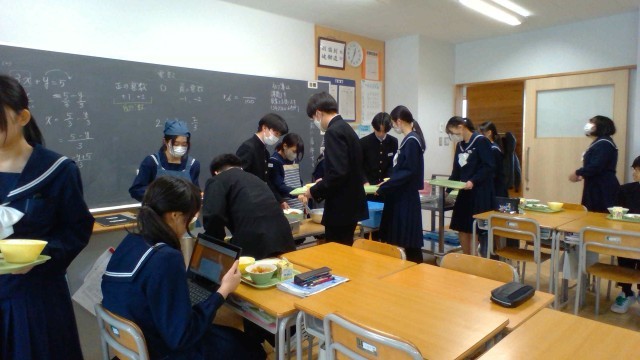 3年生の給食の様子です。本日は保護者懇談会のため、4限で下校です。どのクラスでも、入試や最後の定期考査に向け、給食の時間ギリギリまで学習を進めている生徒の姿が見えました。