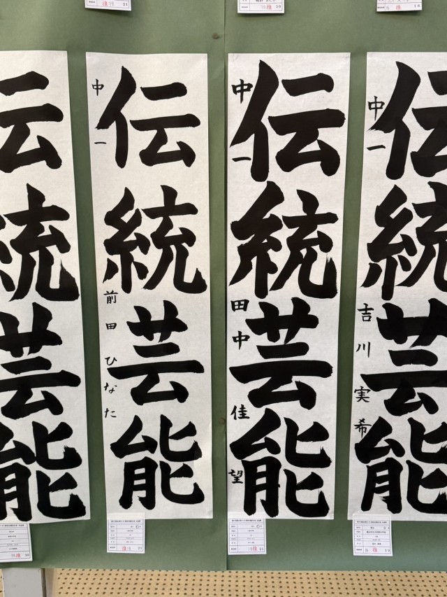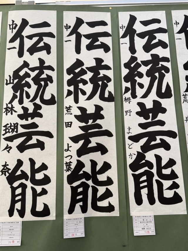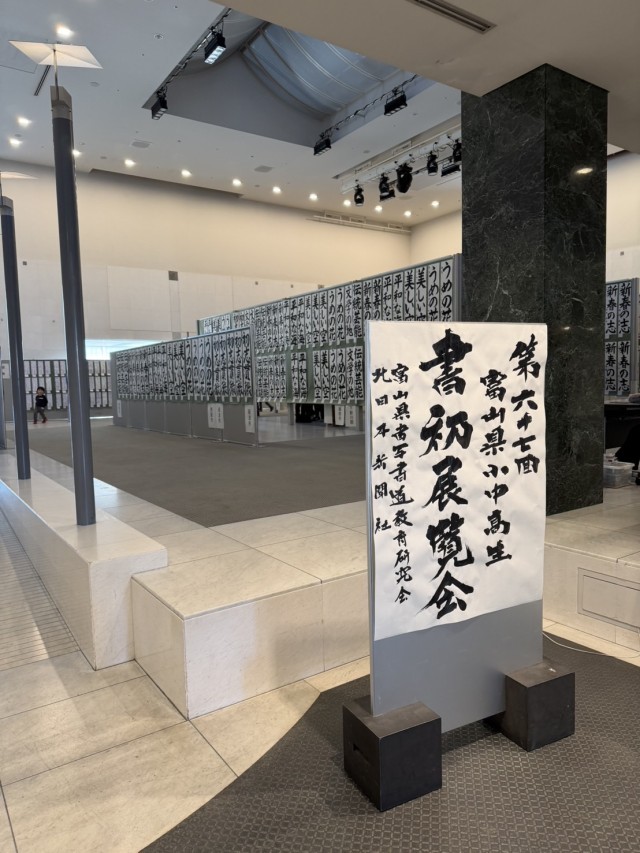 先日行われた富山県小中高生書初大会での推選作品が、市民プラザで展示されました。