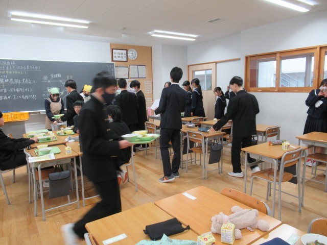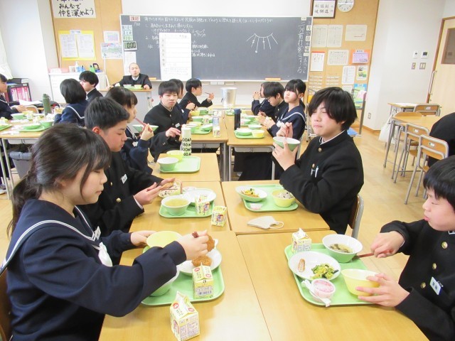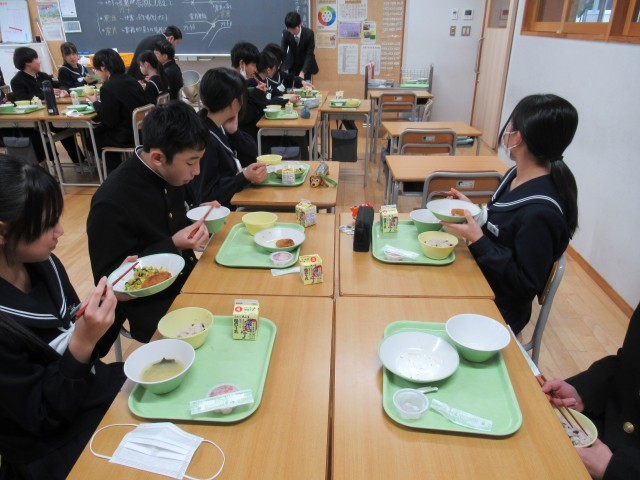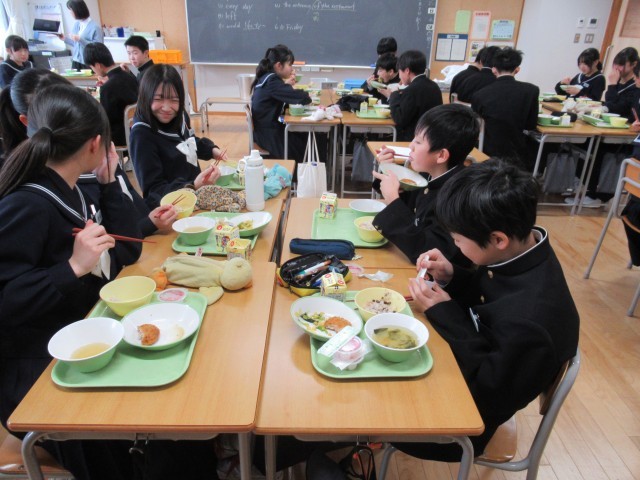 今日は残食ゼロ週間の2日目。空の食缶を見ると気持ちいいですね。卒業祝いのメニューを楽しんで食していました。このクラスのみんなと給食をとることのできるのも後17回となりました。感謝しつつおいしくいただきましょう。