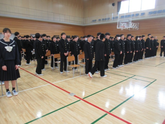 2月26日(木) 1・2年生 式歌練習 公開日 2026/02/26 更新日 2026/02/26 八尾中学校のページ 4限、1・2年生で卒業式に向けて合唱練習を行いました。最初に校歌を歌ってのどを温め、卒業生へ送る歌を練習しました。より良い合唱にするために、指揮者・伴奏者だけでなく、2年生のリーダーたちも大きな声で後ろから歌ったり、アドバイスしたりとサポートしていました。3年生に歌だけでなく、想いも届くような素敵な合唱にしていきたいですね! +3