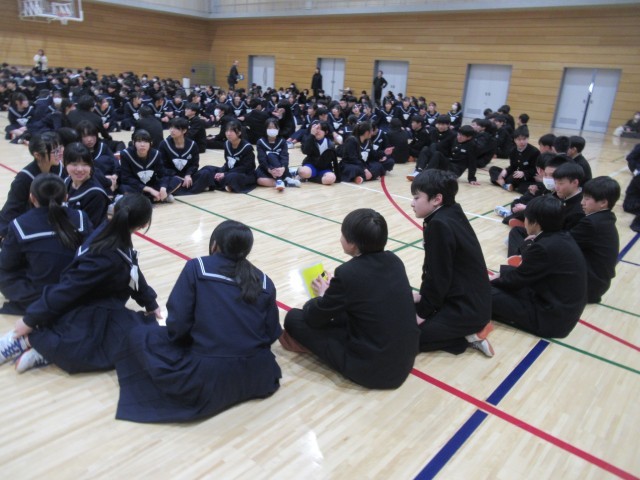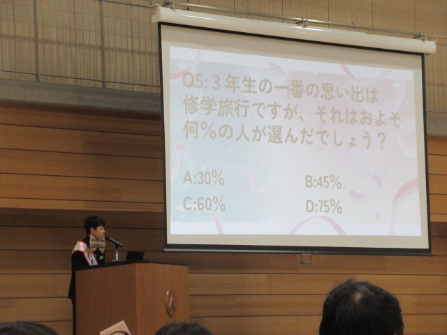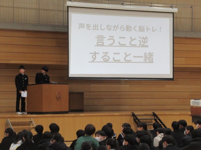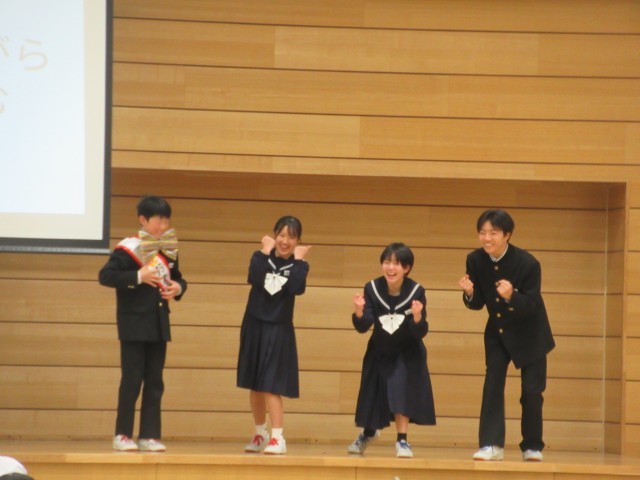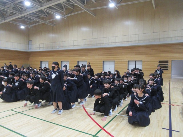 3月9日(月)3年生ありがとう集会 公開日 2026/03/09 更新日 2026/03/09 八尾中学校のページ 生徒会執行部主催の「3年生ありがとう集会」が午後、行われました。各クラスみんなで行う脳トレゲーム、3年間を振り返った思い出クイズ、1・2年生からのメッセージムービーなど、盛りだくさんの2時間でした!在校生からの想いが3年生に届いたと思います。生徒会執行部のみなさん、楽しい時間をありがとうございました!(写真は生徒会執行部、2年生です。) +3