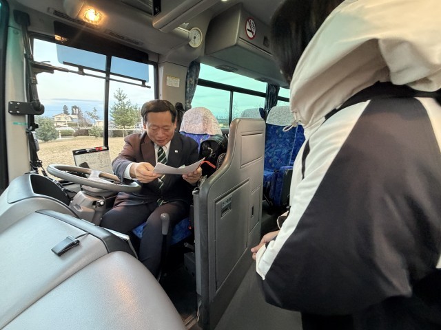 3学年では感謝の気持ちを伝えるために、学校生活でお世話になった方にお手紙を書きました。今日は、毎日乗るスクールバスの運転手さんへ代表生徒が挨拶しました。安全に毎日運転してくださってありがとうございました。