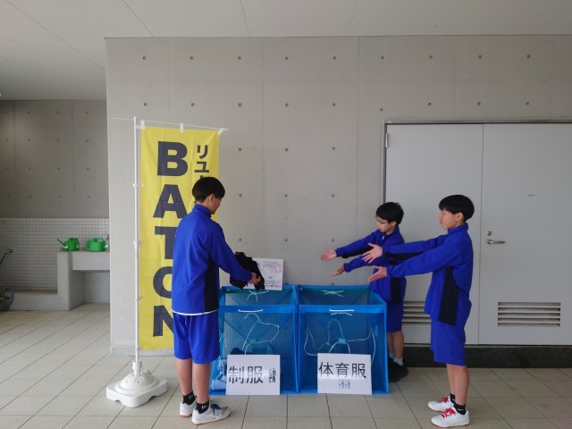 生徒会執行委員会では、ボランティア団体「BATONとやま」と協力し、制服のリユース活動に取り組んでいます。