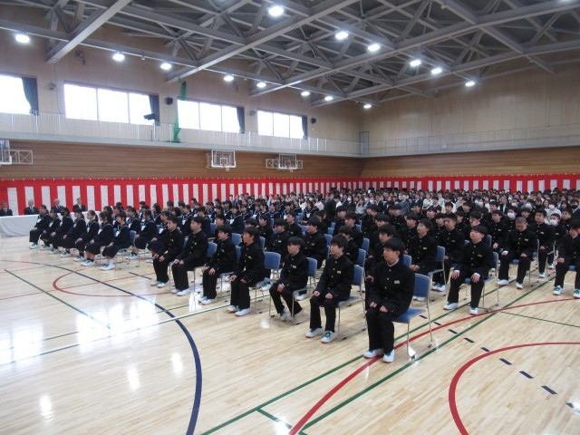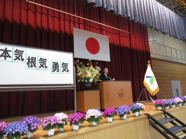 入学式 式辞・祝辞 公開日 2026/04/10 更新日 2026/04/10 八尾中学校のページ 校長は式辞で3つの「気」を示し、「本気」・「根気」・「勇気」をもとに、選択し行動することを話されました。PTA会長は、「いろいろなことに挑戦してください。失敗しても立ち上がれば、みなさんの経験値が上がります。」と話されました。新入生は真剣な表情で聞いていました。
