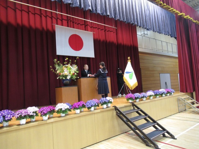 在校生代表による「歓迎の言葉」では、「僕たち先輩とも素敵な思い出をたくさん作っていきましょう」と温かい気持ちが伝えられました。新入生代表は「私たちはこれから八尾中学校の生徒として、この学校がより良い学校になるように、いろいろな活動に挑戦します」と決意を述べました。