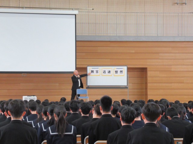 全校集会や学年集会での入場の仕方や、挨拶の仕方を確認しました。