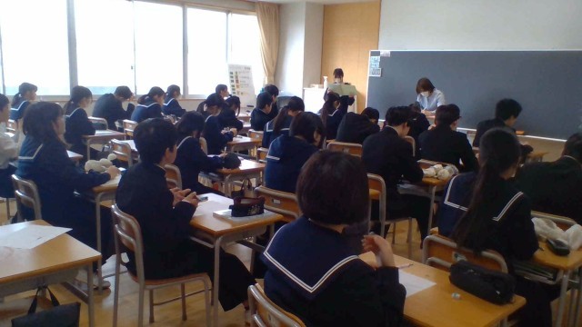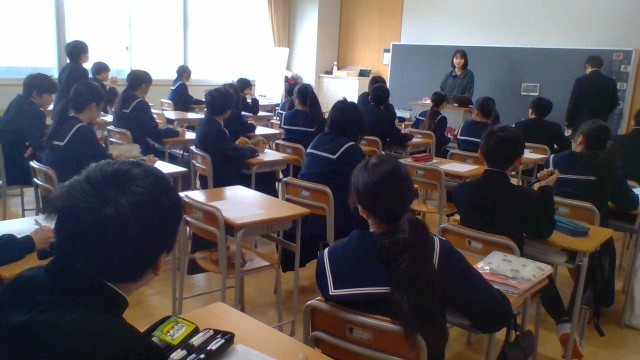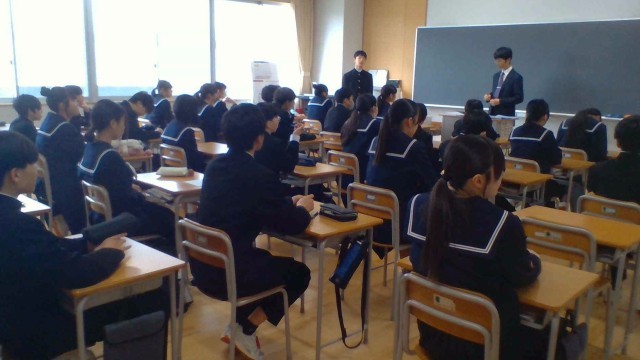 日直の生徒が、一日の流れを確認したり、意識してほしいことを伝えたりしています。