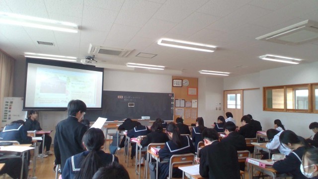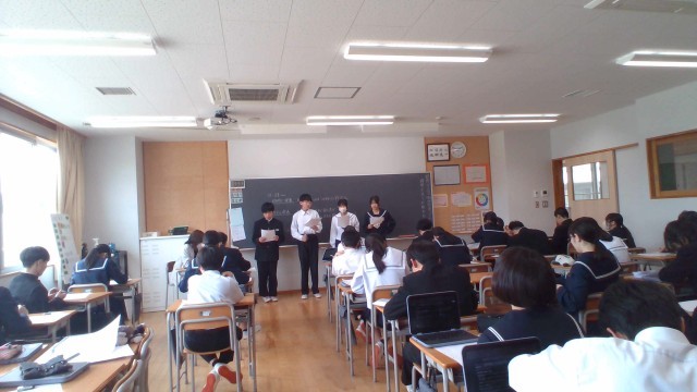 Chromebookを使用して個人で事業所について調べ、その後班で発表、最後にクラス全体で発表をしました。