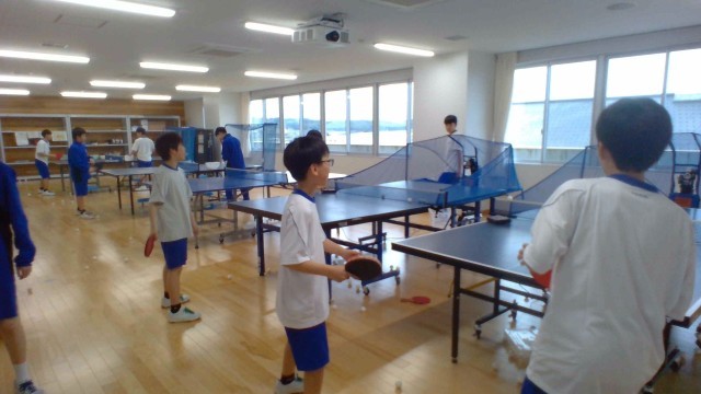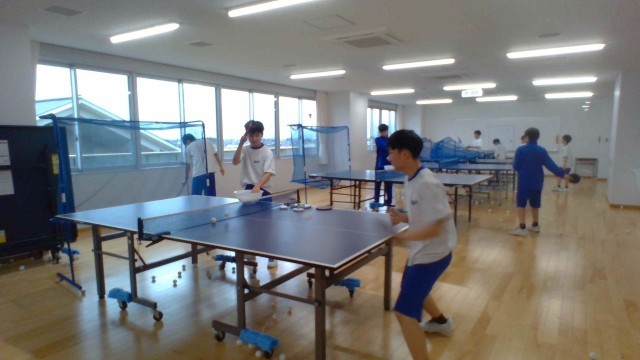 集会室では、男子卓球部が、懸命に白球を打っていました。