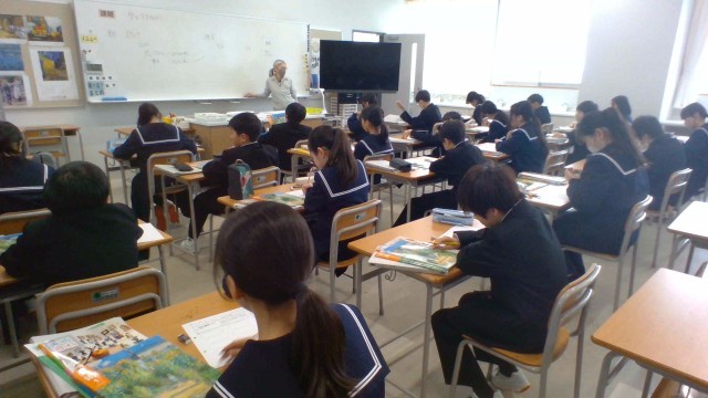 (写真 上:1年1組 美術「作品鑑賞」)