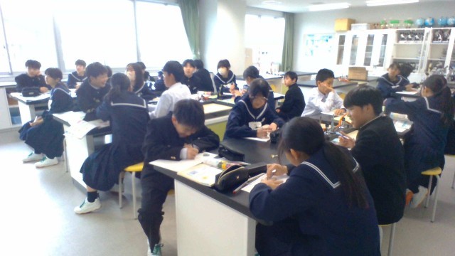 (写真 中:1年2組 理科「花のつくり」)