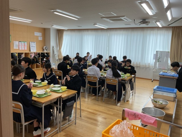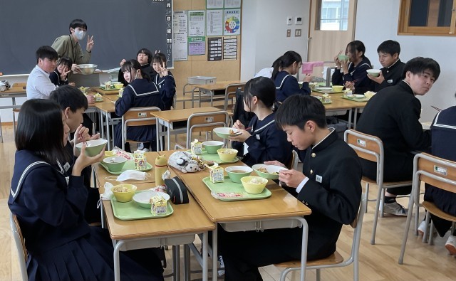 どのクラスも和やかな雰囲気の中で食事をしています。特に今日は「お祝い献立」なので、いつも以上に笑顔が多かったです。