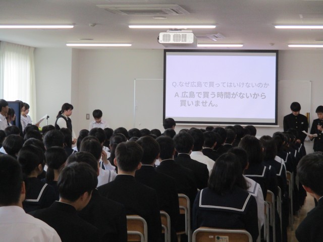 今日の学年総会の議題は修学旅行のルール。24日の学級討議をもとに実行委員が準備をしてくれました。