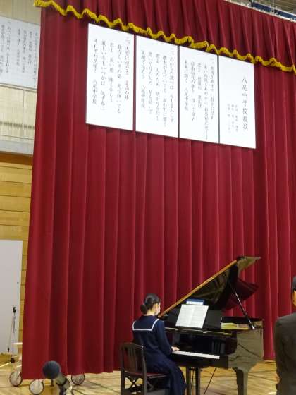 生徒たちが大切にしたい言葉、思いを受け止め、大好きなふるさと八尾町の素敵なところ、思い、杉原・八尾のよいところ、、、等がたっぷり入った素敵な歌詞、歌いやすい優しいメロディ、、、生徒たちは声高らかに歌いました。