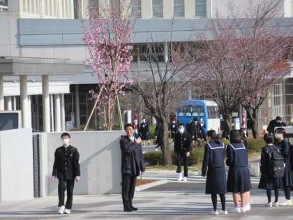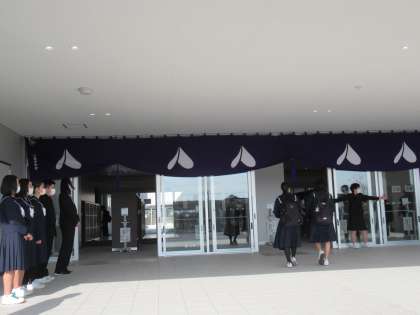 生徒会執行部が今朝も玄関前、校門前等で挨拶運動をしています。