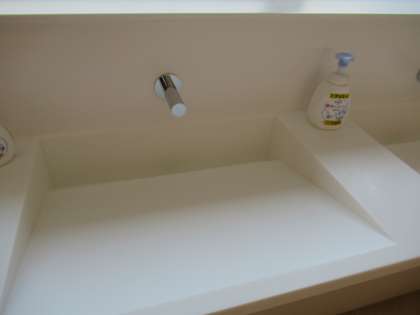 まずは、手洗い場です。排水溝が見えない構造です。おしゃれですね。