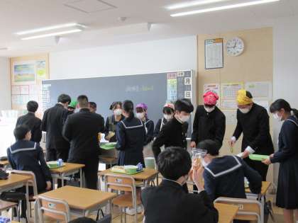 朝から給食室の様子を撮影しておられ、給食時間は3年生教室で配膳の様子や食事中の様子を撮影されました。