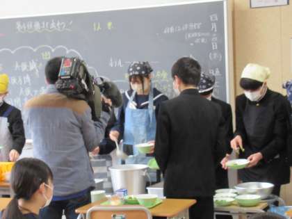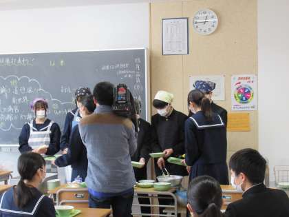 給食関係の放映のために、テレビ局が映像として本校に取材に来られました。