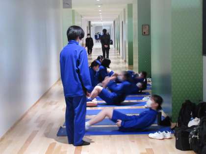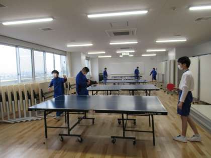 3階の集会室も放課後になると、卓球部の練習場に早変わり。昨日は、生徒議会で活用しました。