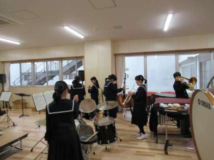 吹奏楽部は、音楽室ではなく、1階の楽器室で練習しています。