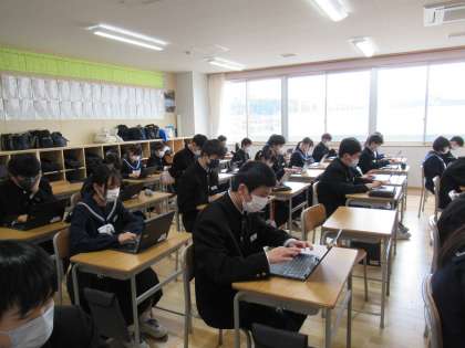 春休みの課題で、金沢について調べてきたものを一人ずつchromebookでプレゼンテーションを作成しています。