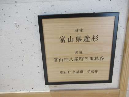 八尾中学校内の床や壁には、富山県産の杉が使われています。