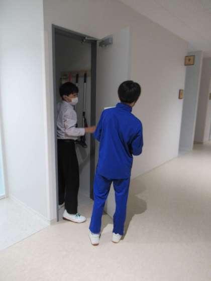 廊下には何も置いてないので、清掃用具を収納する場所の扉を探しながら、、、。