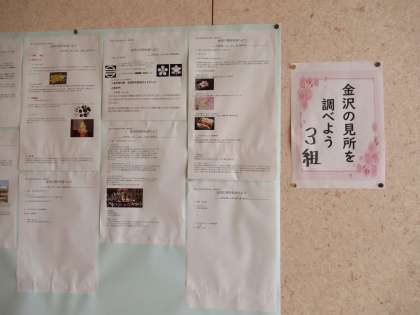 春休みの課題であった「金沢の見所調べ」のレポートが完成し掲示してあります。