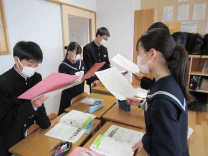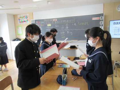 書いた後は、友達と伝え合いました。伝え合う中で、相手の素敵な表現を自分に取り入れ、自分の原稿を再考しました。
