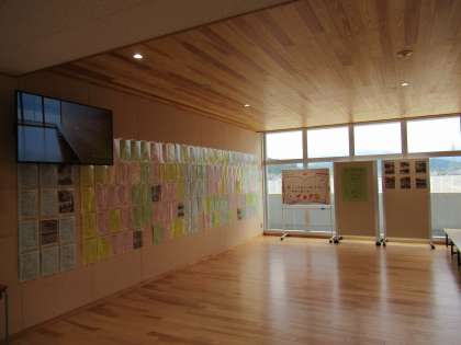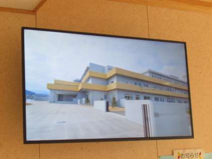 「サイネージ」には、先日来お伝えしているとおり、開校式で放映した学校紹介ビデオが朝からエンドレスで流れています。