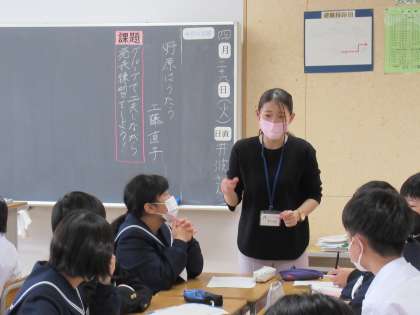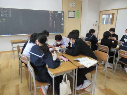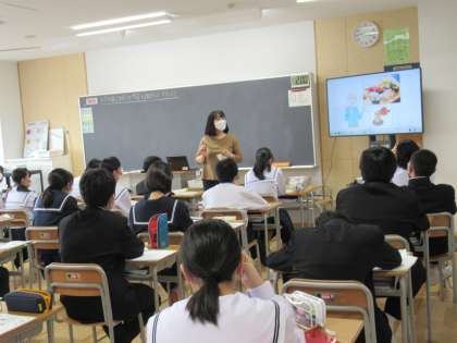 写真上は、英語科の様子です。ICTを活用しながら、内容理解に努めています。