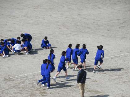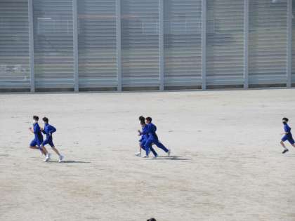 グラウンドで持久走に取り組んでいます。