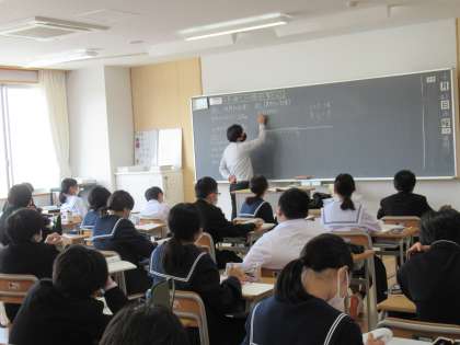 写真下は数学の授業の様子です。正負の数の計算について学んでいます。