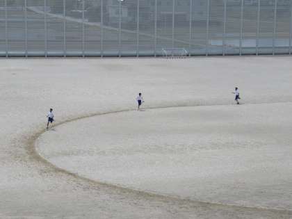 グラウンドで持久走をしています。