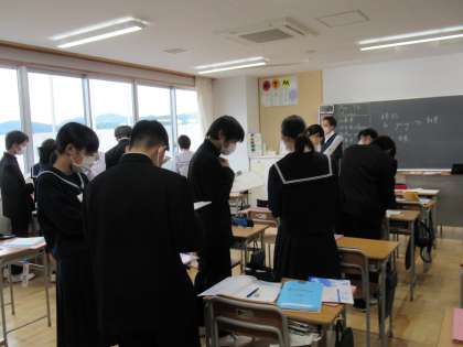ペアで「〜してくれませんか」と依頼し、それに応じるという対話の練習をしています。