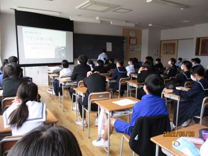 兼六園や金箔を工芸、和菓子についての発表等、写真をうまく使ってスライドで説明していました。