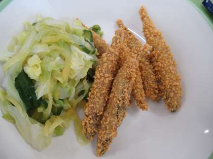 「きびなご」は、全長10cm程度の、体は前後に細長い円筒形で、頭部が小さく口先は前方にとがっている魚です。